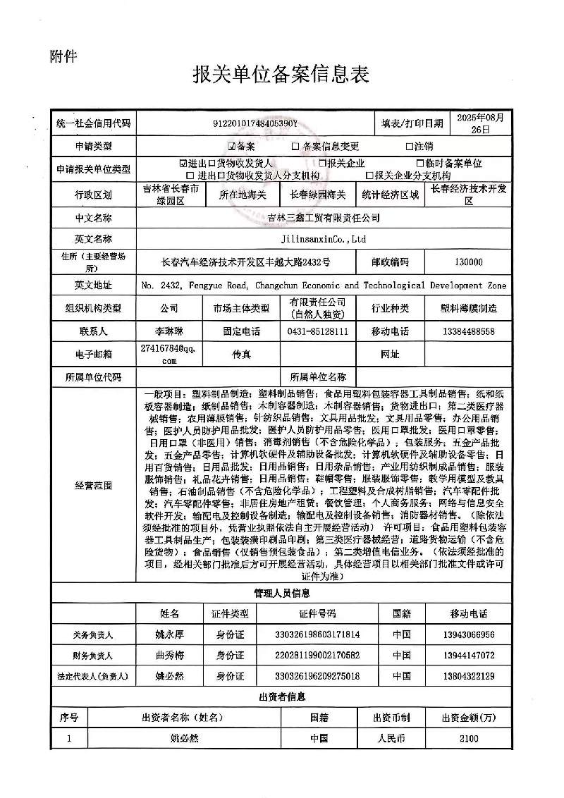 Địa chỉ công ty : No. 2432,Fengyue Road,Automotive Economic and Technological Development Zone,Changchun City ,Jilin Province, Changchun, Jilin, China